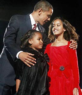 第三,不要溺爱孩子。玛丽娅说,她希望成为“一名女演员或者时装设计师”,萨莎则向往当“摇滚明星”。没错,她们是摩登的未成年少女,深受流行文化的影响,追求高科技产物还喜欢饶舌。奥巴马夫妇面对的一大挑战是,允许他们的女儿们尽情享受青春期前的时光,同时又不会把孩子们宠坏。在奥巴马家,特权和规定同在。入住白宫的第一夜,总统给孩子们准备了意外的惊喜。她们见到了自己的音乐偶像乔纳斯兄弟,但是她们不可以在迪士尼偶像剧《汉娜.蒙塔娜》上露面。孩子们拥有iPod、照相机、电脑,但是不允许违反学校规定带着手机上学。