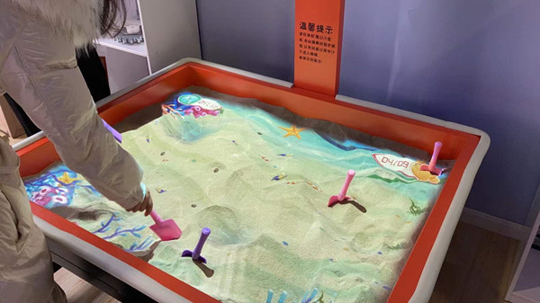 沙盘采用的石英砂经过特殊处理,无毒无辐射、耐高温且不吸水,对幼儿健康没有危害。投影部分配备有智能距离传感器,既能准确感知沙盘形态变化,又能确保使用安全。